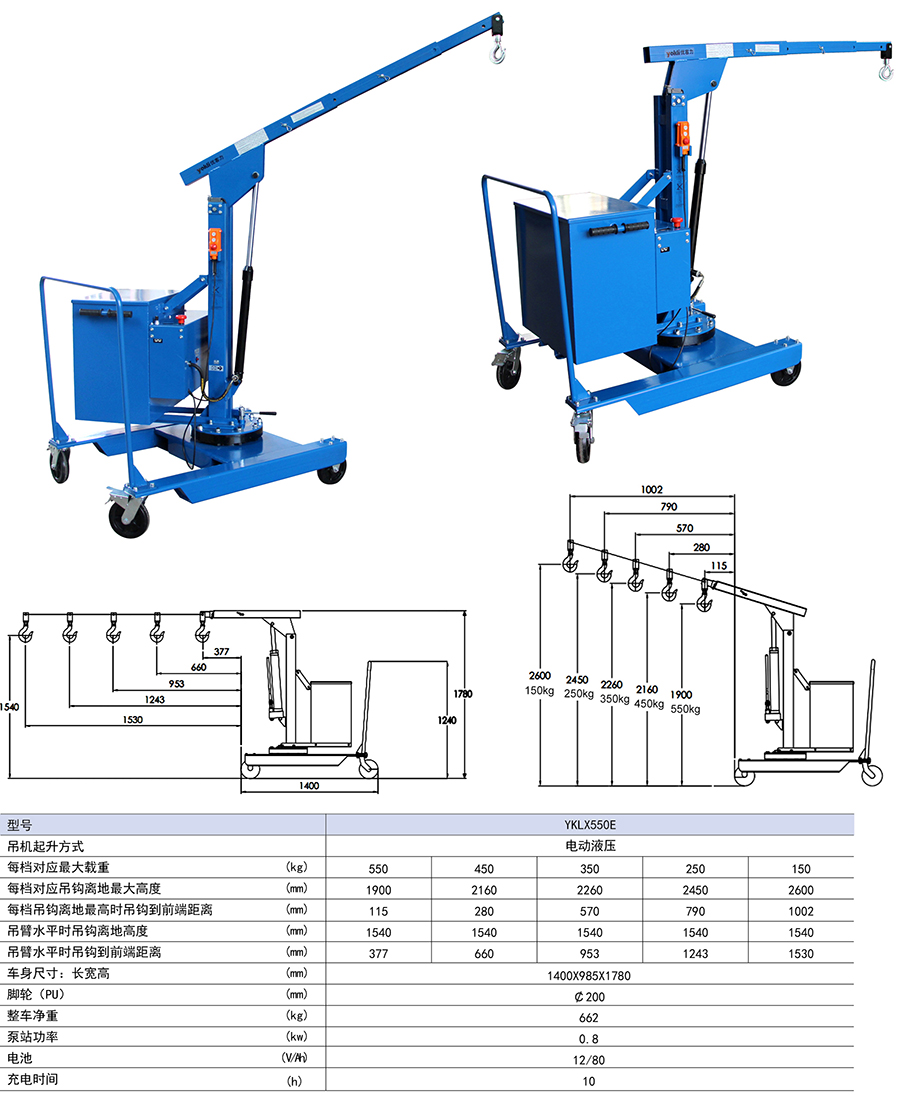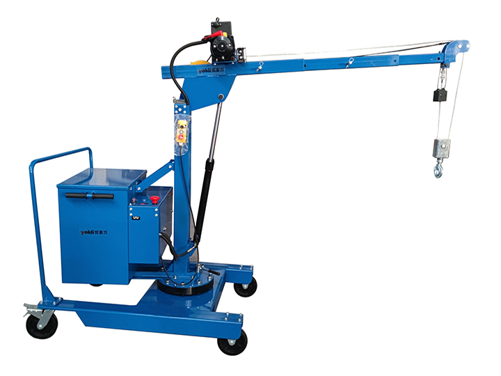 ● 吊臂長度可五工位手動調節,配有鍛造重載可旋轉吊鉤。