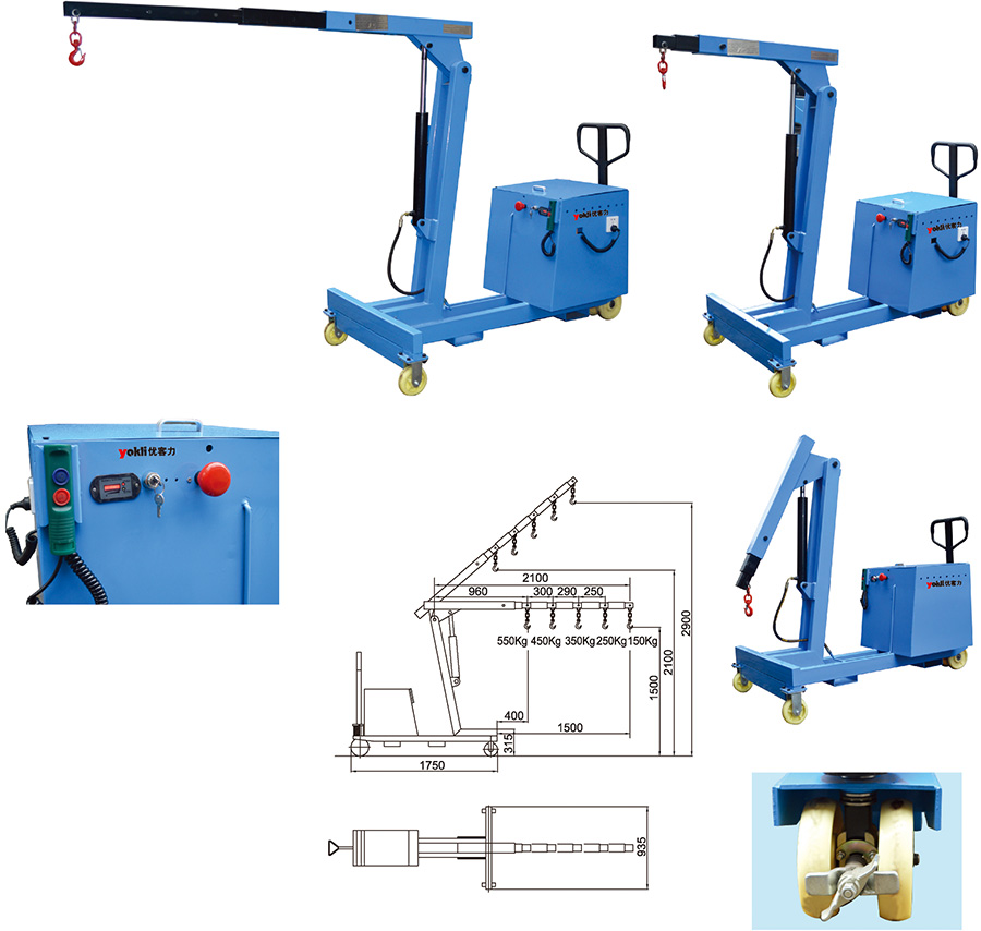 ● 吊臂長(zhǎng)度可五工 位手動(dòng)調(diào)節(jié),配有鍛造重載可旋轉(zhuǎn)吊鉤。