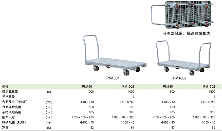 ● 1500Kg推車帶有兩個直輪,四個萬向輪。